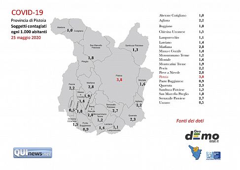 In tutta la Toscana sono 10.067 i casi di positività al Coronavirus, 5 in più rispetto a ieri, due di questi sono stati registrati a Pistoia.