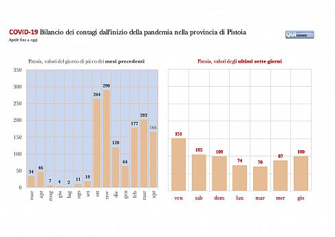 Ancora 100 nuovi casi di contagio da coronavirus Covid-19 e 3 ulteriori decessi: questi i dati delle ultime ventiquattro ore in provincia di Pistoia tra città, piana, montagna e Valdinievole secondo i dati del bollettino quotidianamente emesso dalla Regione Toscana.